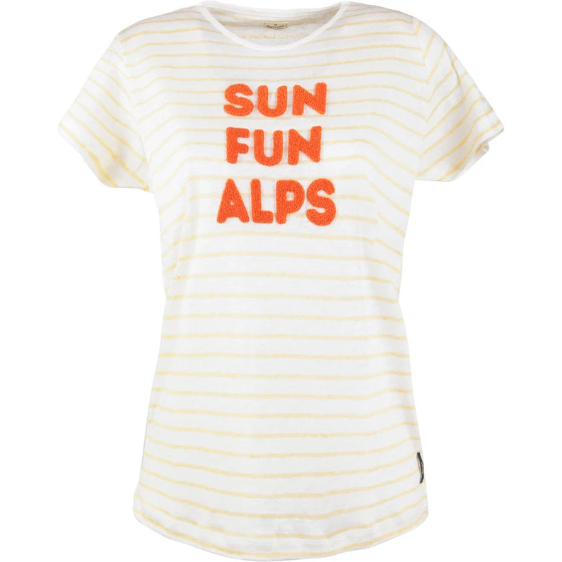 Sun – Fun – Alps! Mit Raketenschub in Richtung Sommer und Berge! Beim Frontmotiv des Gitti T-Shirt für Damen von Alprausch kann man regelrecht die Sonne auf der Haut schnuppern! Verspielte Details und ein toller Tragekomfort komplettieren den Style des weichen Baumwollshirts.br>