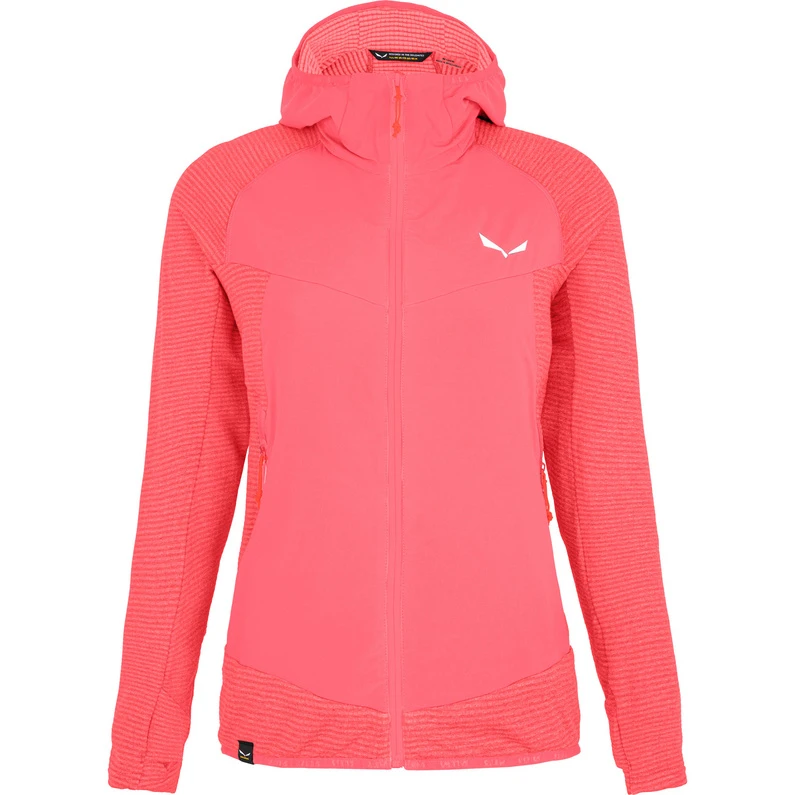 Die Rolle PL R Jacke von Salewa für Damen ist eine leichte, winddichte und atmungsaktive Fleecejacke mit Softshell-Einsätzen an den Ärmeln, ideal für den vielseitigen Outdoor-Einsatz.Die Fleecejacke zeichnet sich durch den femininen Schnitt, die optimale Bewegungsfreiheit und den hohen Tragekomfort aus.Die Rolle PL R ist aus patentiertem Polarlite Responsive Fleece gefertigt. Das Gewebe enthält eine einzigartige Mischung aus thermoreaktiven Mineralien, die die Ferninfrarotenergie (FIR) des Körpers speichern und nach und nach wieder ans Muskelgewebe abgeben.Die anliegende Kapuze ist elastisch eingefasst, ebenso die Ärmelbündchen und der Saum. In den beiden Seitentaschen mit Reißverschluss finden wichtige Kleinigkeiten einen sicheren Platz.Die Rolle PL R Jacke eignet sich perfekt für etwas kühlere Tage und kann auch durch die glatte Außenseite als Midlayer unter einer Hardshelljacke getragen werden.br>